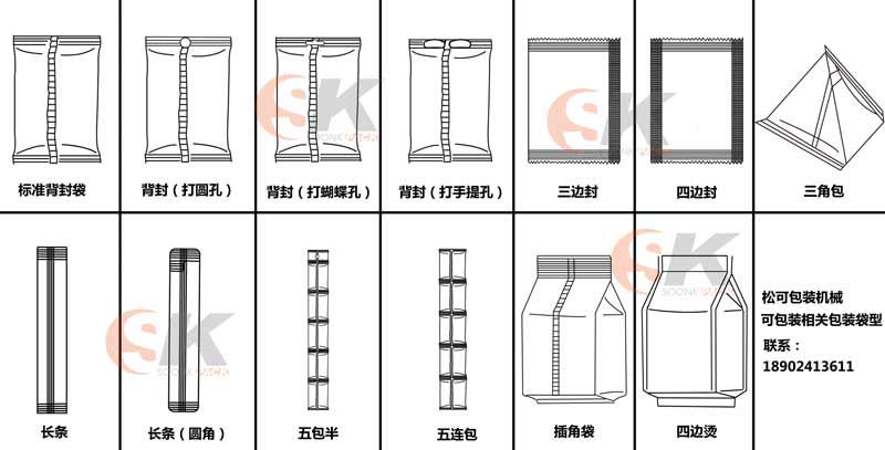 连袋沐浴露洗发水液体包装机 多功能三四边封酵素洗衣皂定量包装机包装袋型展示