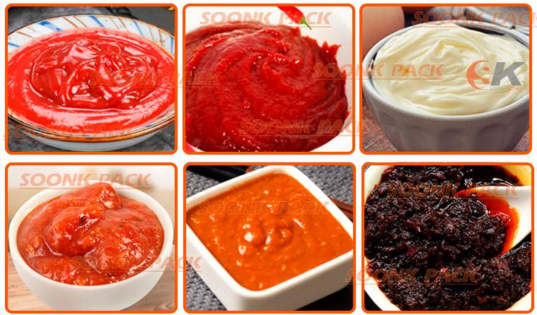 立式酱料自动包装机适合包装酱料类的物料。如肉酱、番茄酱、花生酱、芝麻酱、酸辣椒、甜辣酱、螺肉酱、方便面酱料,沐浴露、洗发水、消毒液等等有颗粒的酱料产品