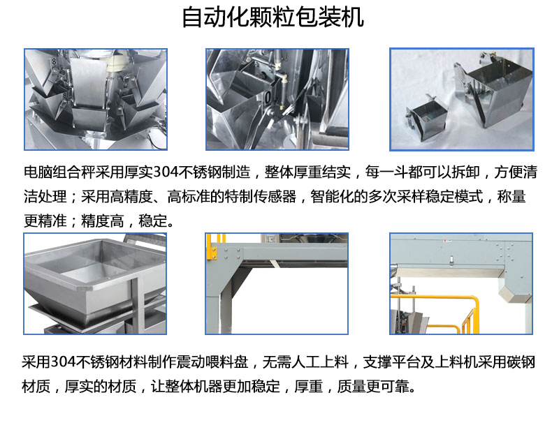 1. 四边压痕插角袋包装机采用食品级304不锈钢制作,防锈,耐磨损,安全稳定;