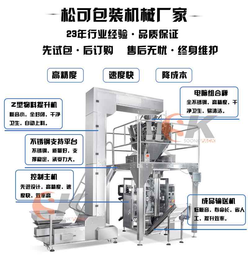 五谷杂粮立式四边压边插角袋包装机膨化颗粒食品全自动包装设备