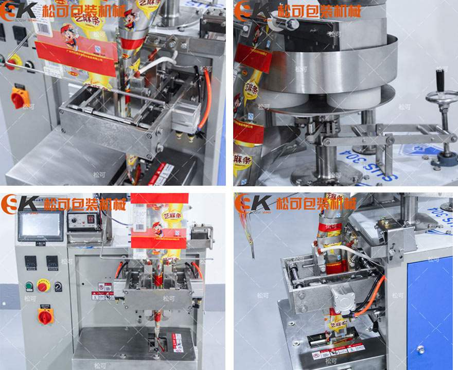 本机适合于膨化食品,虾条,花生,瓜子,大米,种子,味精,玉米花,种子等等颗粒状条片状,固物料的包装